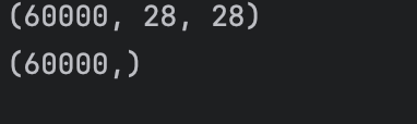 데이터셋 로드 후, 잘 불러와졌는지 확인을 위해 차원을 프린트해보았다.