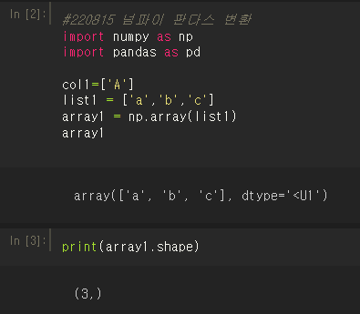 이후 새로운 배열명을 type을 이용해 확인해보면 넘파이로 잘 변환된 것을 볼 수 있다.