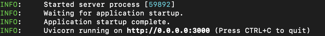 즉 위 코드를 실행하면 Uvicorn 서버가 0.0.0.0 주소에서 3000번 포트로 실행된다.