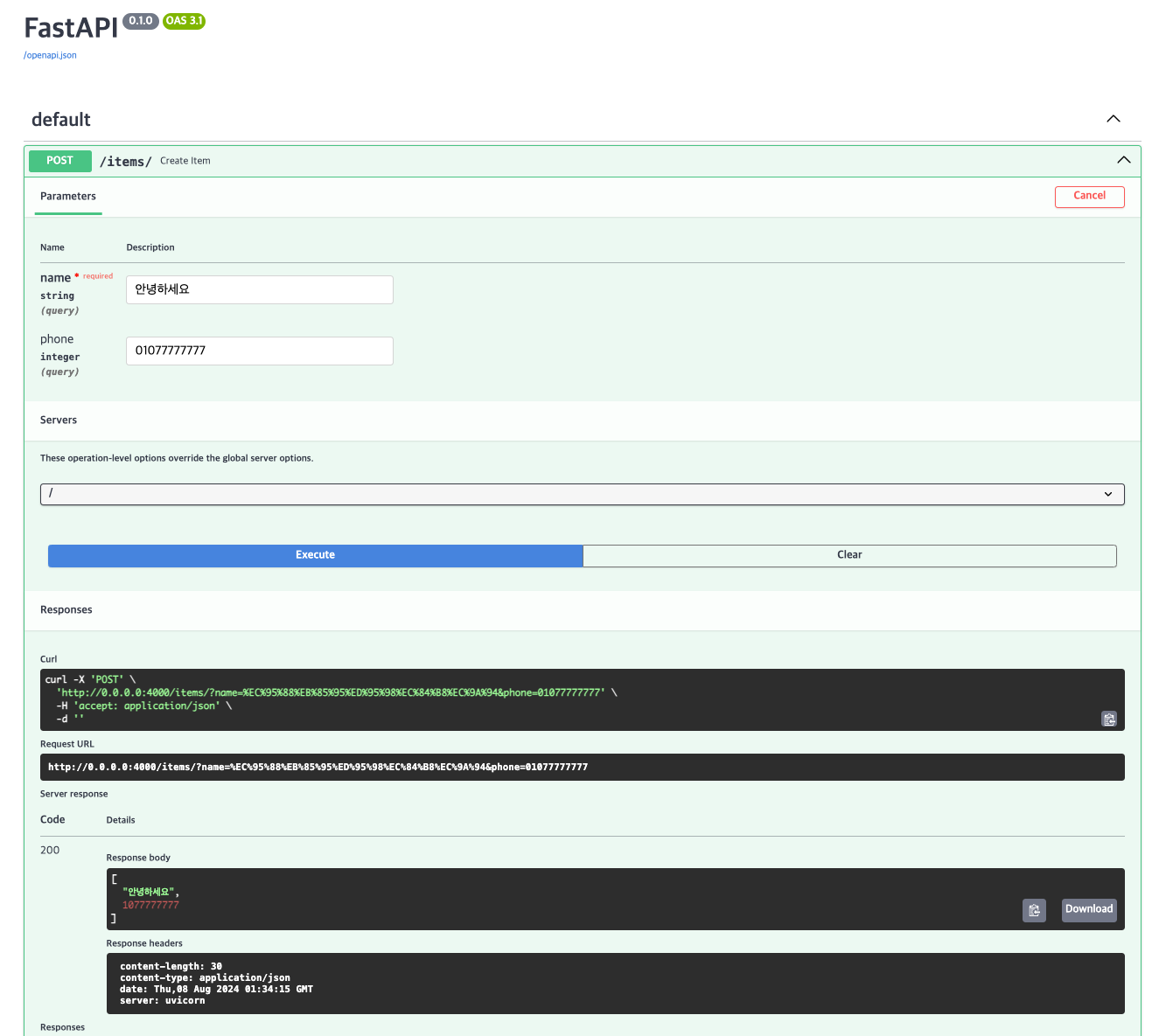 | FastAPI 이해부터 router로 백엔드 API 서버 만들고 docs 문서 확인하기 (0) | 2024.08.07 |