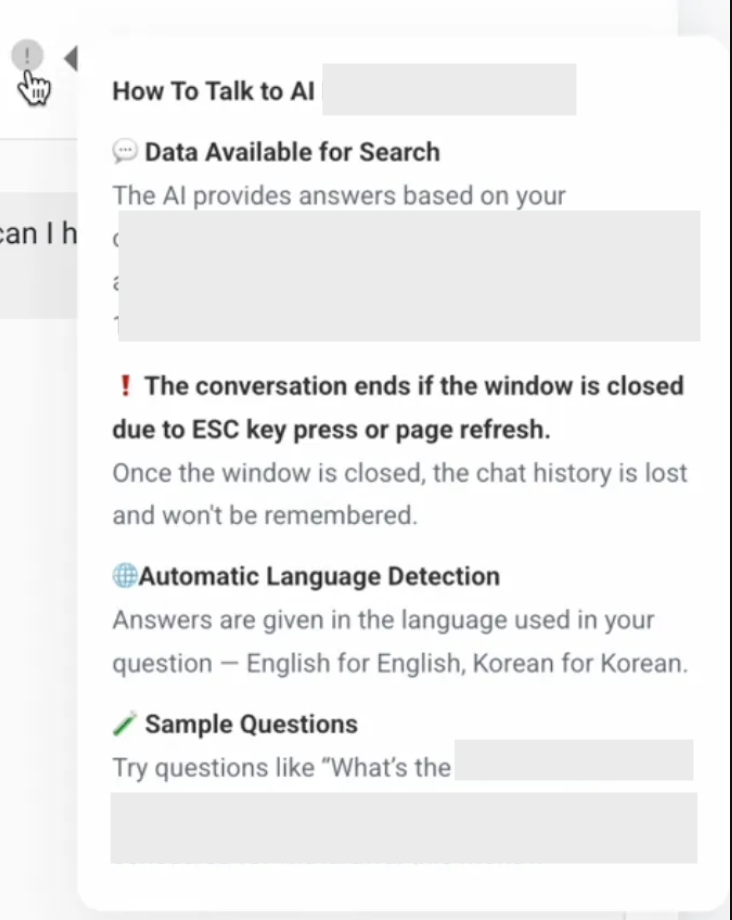 3. 질문한 언어에 맞춰 답변할 수 있다는 점을 참고로 알려준다.