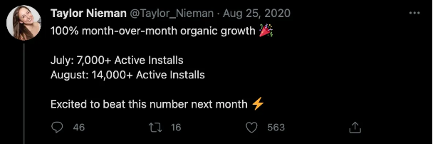 트위터는 실제로 괜찮은 채널 중 하나다. Taylor는 트위터에 모든 것을 걸었다. 불과 2년 만에 그녀는 계정을 0명에서 10,000명 이상으로 늘렸다.