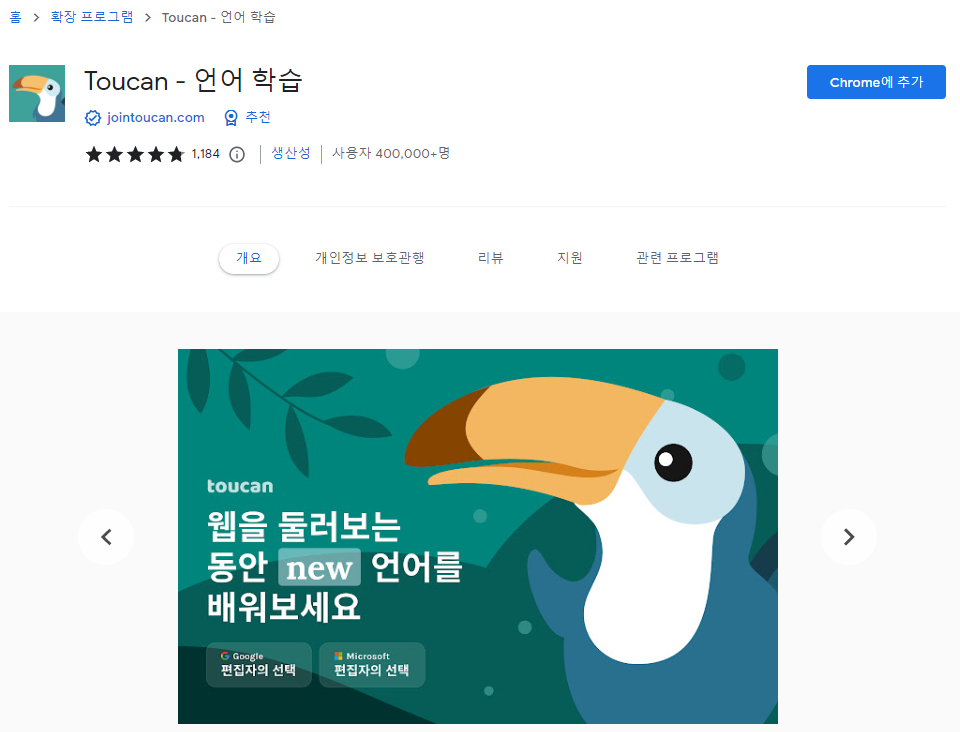 오늘은 따로 시간을 내지 않아도 새로운 언어를 공부할 수 있도록 도와주는 획기적인 크롬 브라우저 확장 프로그램인 투칸(Toucan)에 대해서 알아보자.