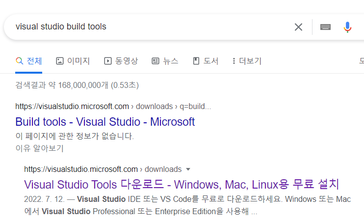 1. Google에 visual studio build tools를 검색해서 다운로드 페이지로 접속