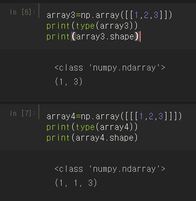 (행렬 [1,2,3]은 1차원이고 [[1,2,3]]은 2차원이라 생각하면 편하다.)