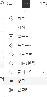 글을 작성하면서 상단 에디터의 더보기를 누르니 광고가 떴다.