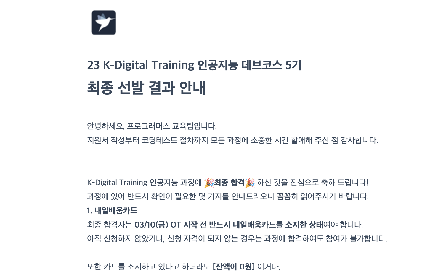 [5기] K-Digital Training: 프로그래머스 인공지능 데브 코스