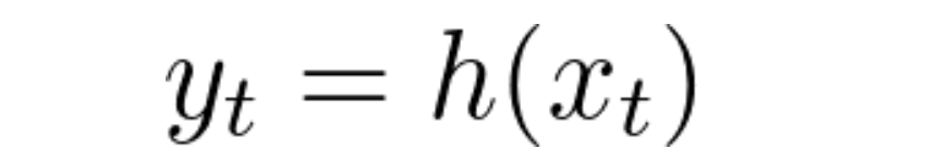 1차원 시스템의 모형에서, 관측 가능한 상태의 모음을 출력 y_t라고 한다면 우리는 이를 아래와 같이 표현한다.