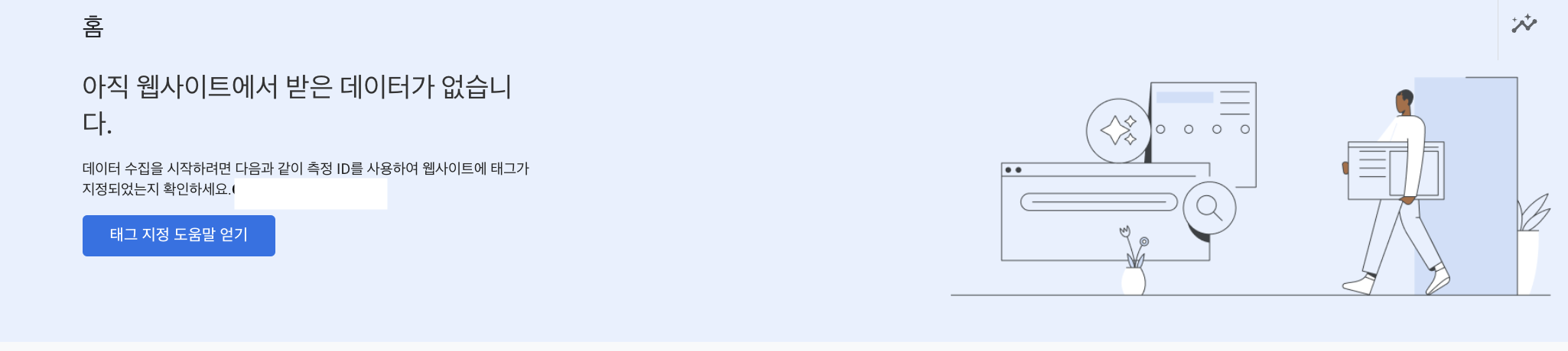 8. 내가 설정한 계정으로 들어가보면 아직 웹사이트에서 받은 데이터가 없다고 뜬다.