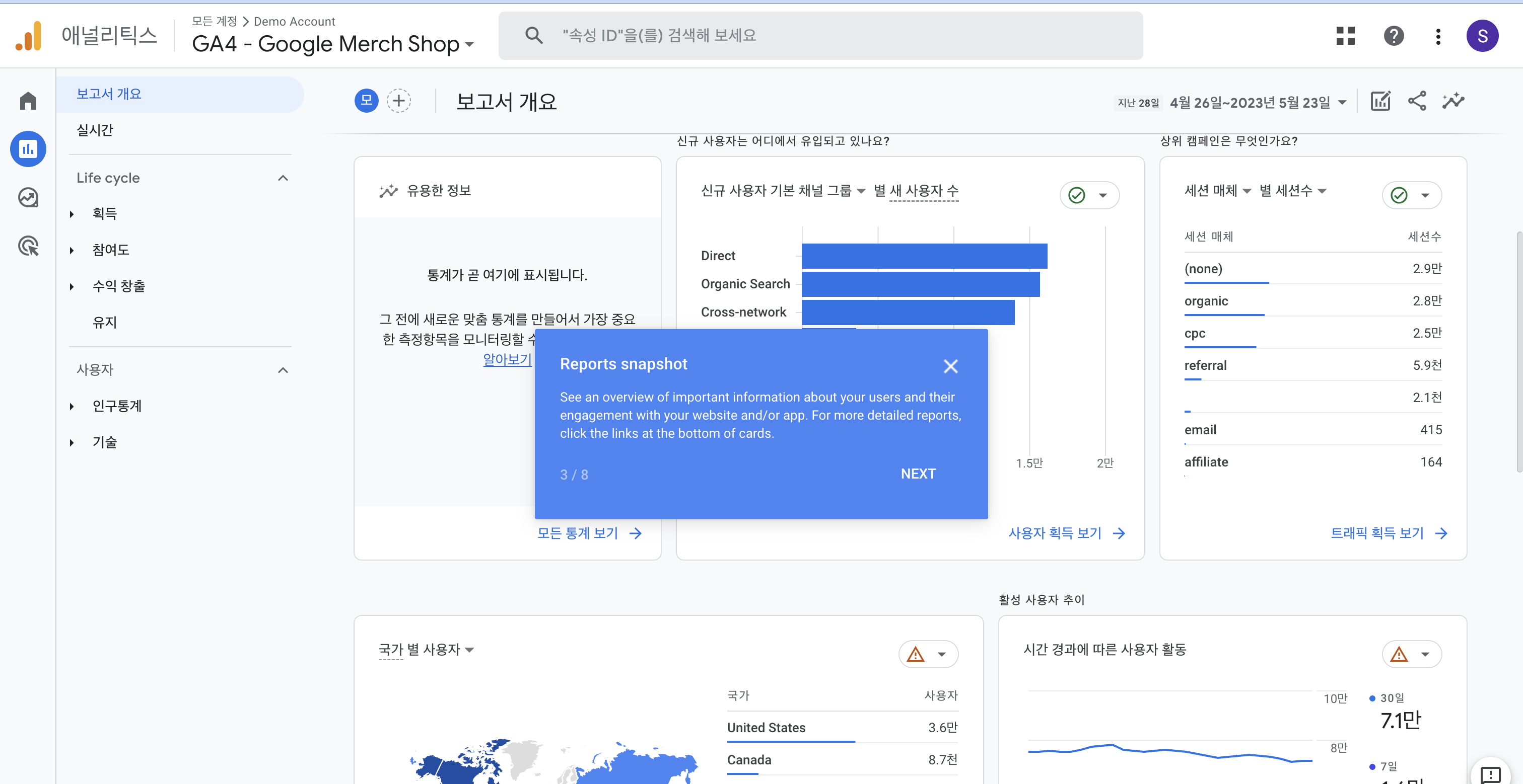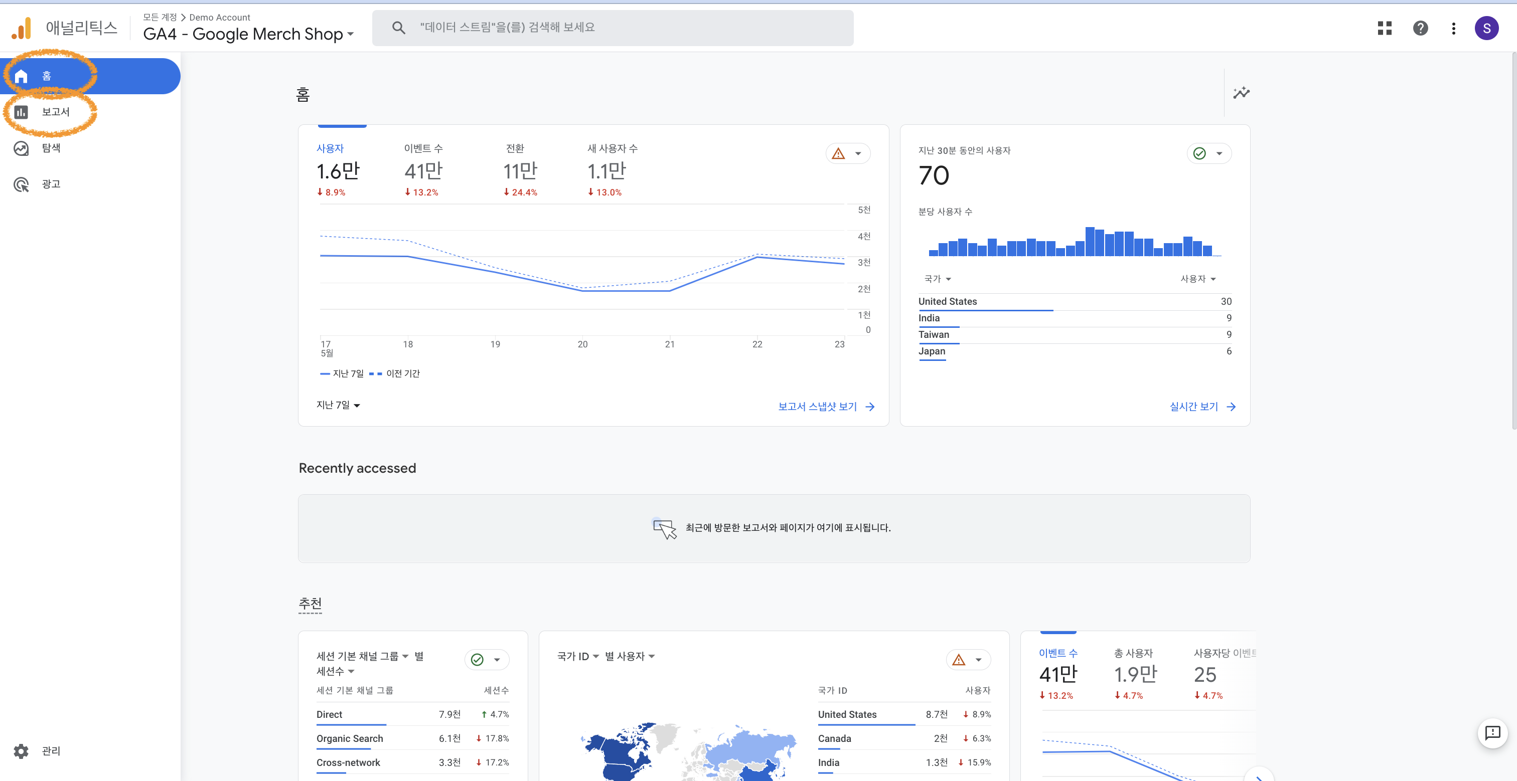 직접 데모 계정을 둘러보면서 보고서 화면에 익숙해지는 시간을 가진다.