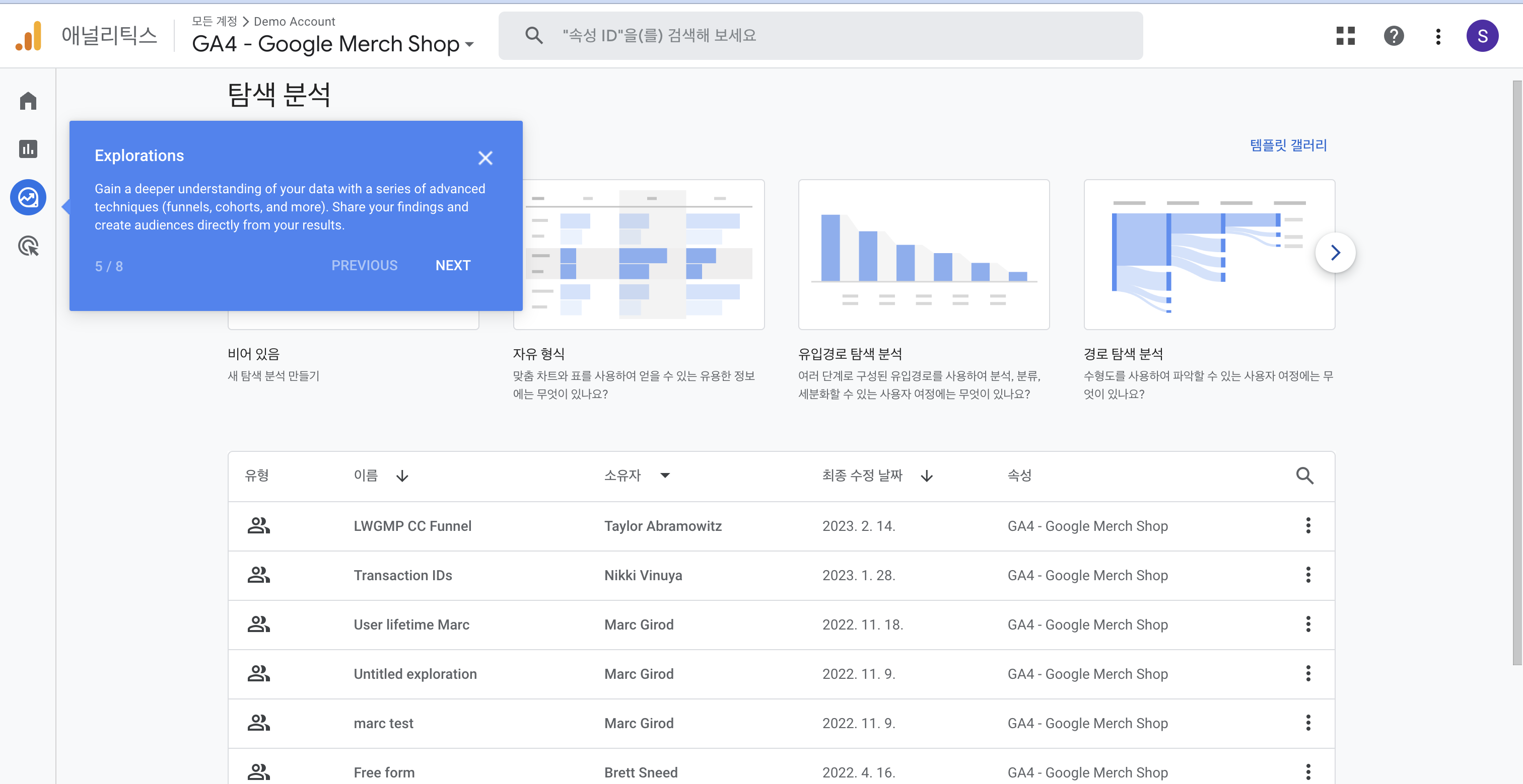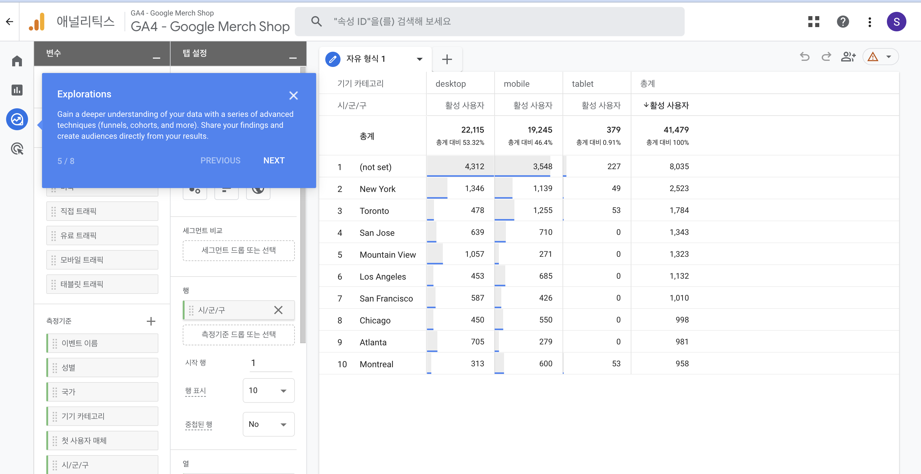 탐색 분석에서는 퍼널, 코호트 분석 등 좀 더 고급 기술을 통해서 분석해볼 수 있다.