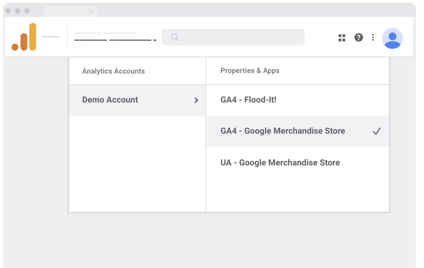 좌측 상단의 계정에서 Universal Analytics 속성을 사용할수도 있지만, 2023년 7월 1일부로 중단됨을 참고하자.