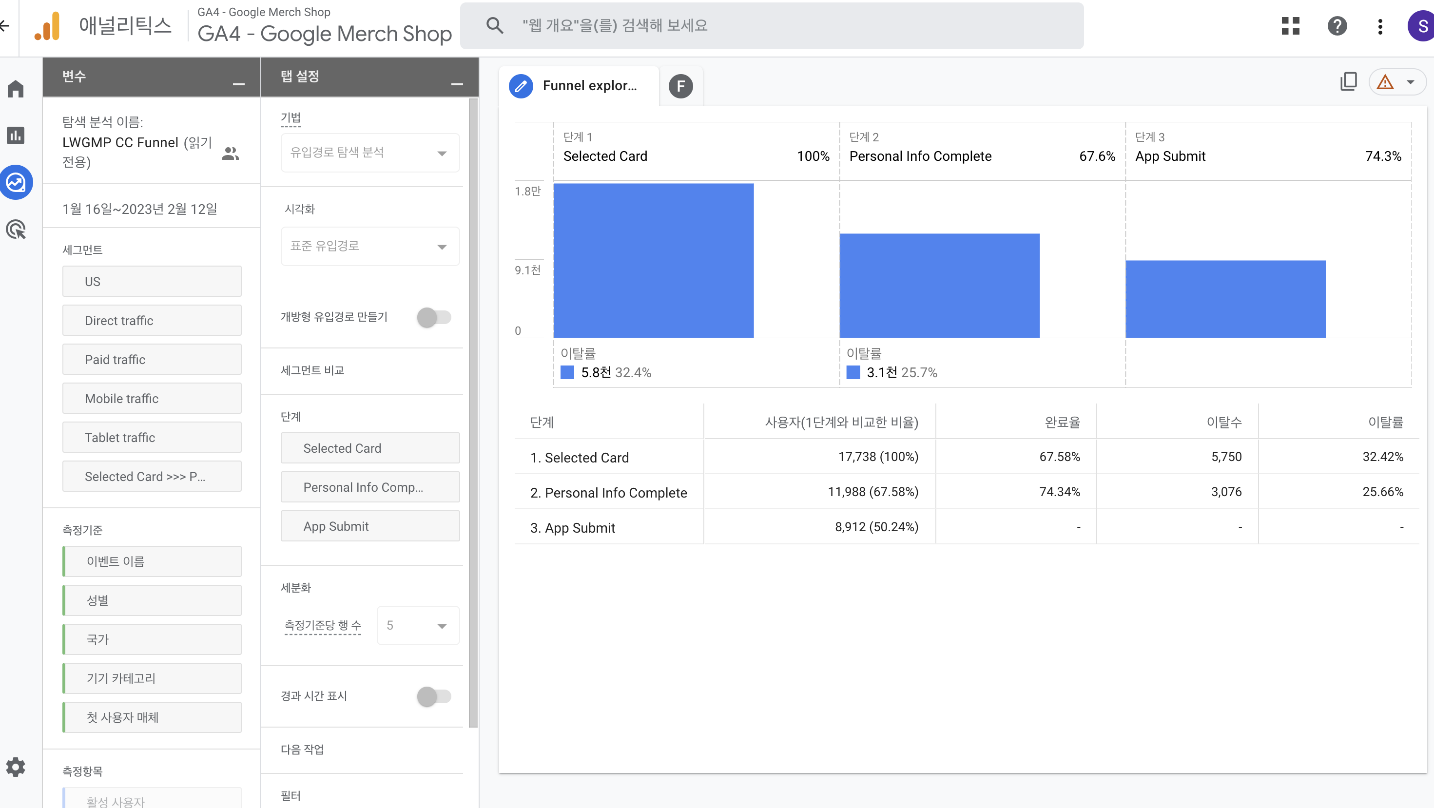 사용자가 퍼널에 들어오는 위치, 이탈하는 위치를 확인할 수 있을 것이다.