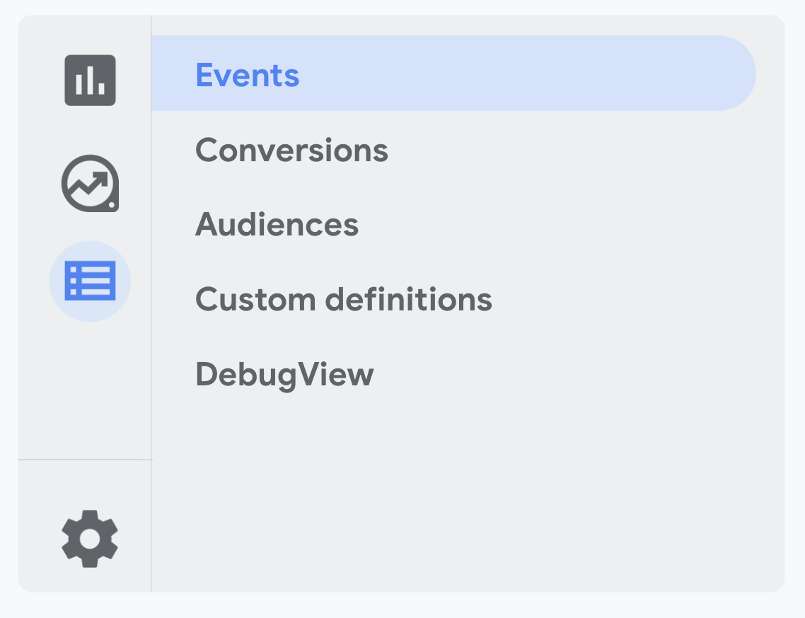 configure, 즉 구성 메뉴에서는 이벤트나 전환(conversion), 대상(audience) 같은 기본 측정 단위를 정의하고 수정할 수 있다.