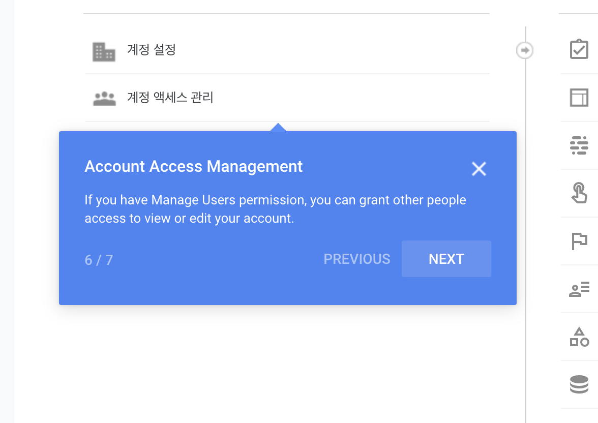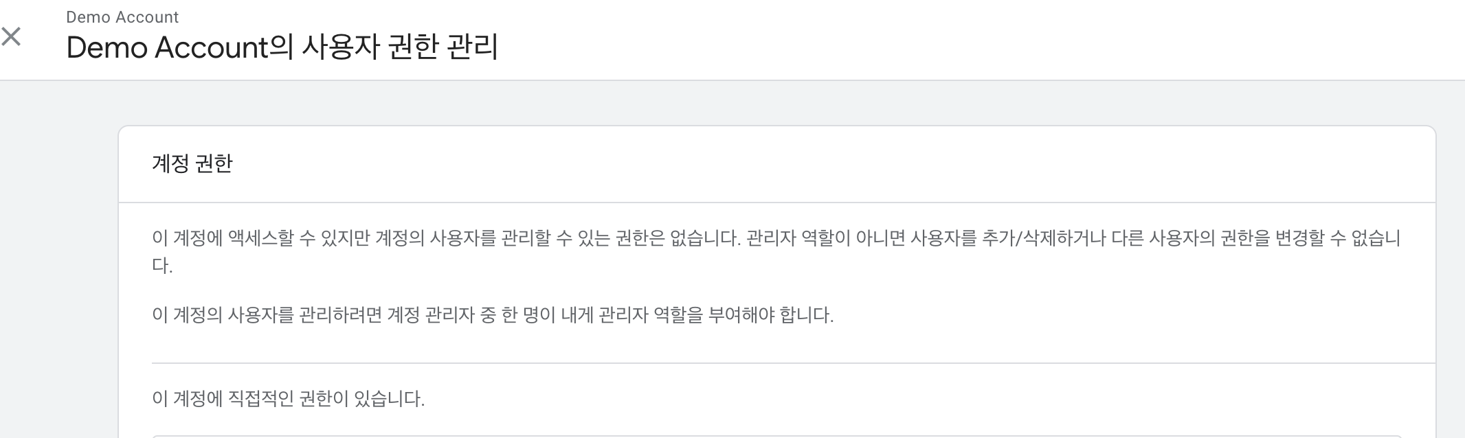 내가 만약 사용자 관리 권한이 있다면, 여기서 Add users를 해서 Analytics 계정을 관리할 사람을 추가하고 권한을 부여할 수 있다.