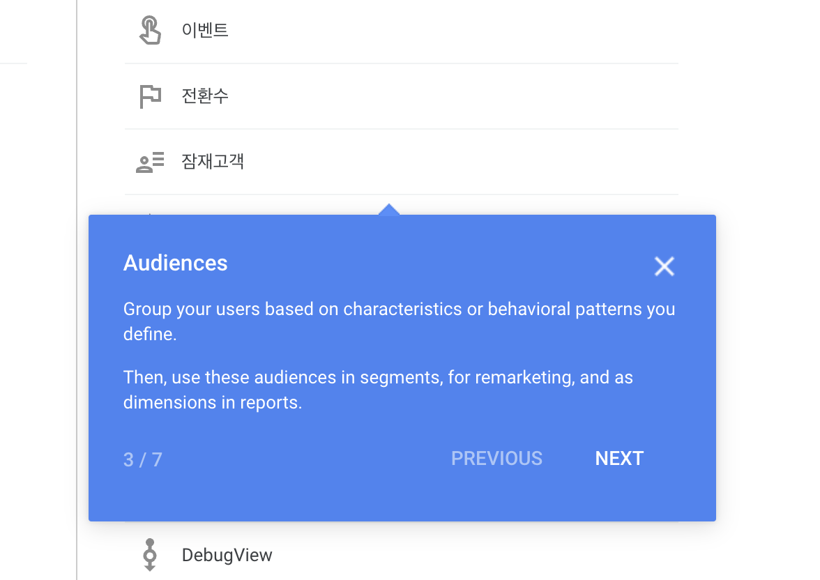 잠개고객(Audiences)에서는 유저의 특징이나 행동패턴을 정의해서 잠재고객을 정의할 수 있다.