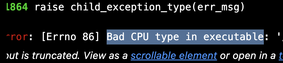 찾아본 결과 M1,M2의 경우 Rosetta를 설치해서 해결할 수 있는 문제로,