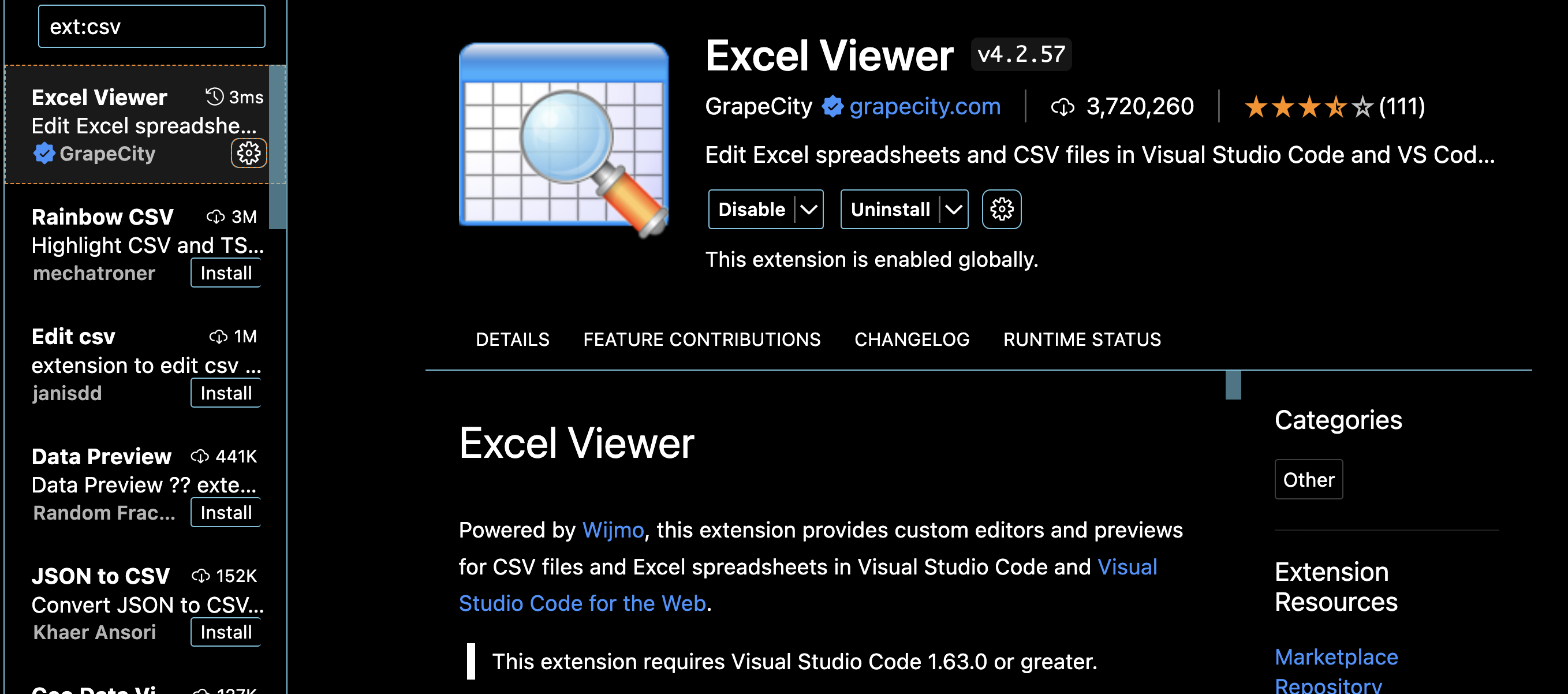 vscode에서 csv 파일을 볼 때, 엑셀처럼 예쁘게 볼 수 있도록 해 주는 툴이다.